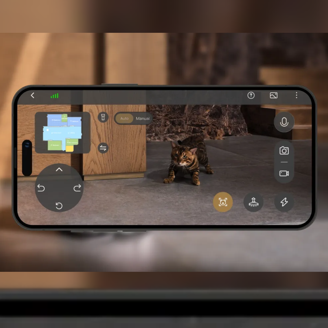 Grâce à la caméra en direct intégrée, vous pouvez voir à tout moment via l’application ce qui se passe chez vous et vérifier que vos animaux vont bien. Où que vous soyez, vous avez accès en temps réel à l’image de votre domicile. Le robot aspirateur dispose également d’une fonction audio bidirectionnelle. Cela signifie que vous pouvez entendre ce qui se passe autour de lui, mais aussi parler directement à vos animaux. Vous pouvez ainsi les rassurer ou simplement garder le contact, même en étant absent.